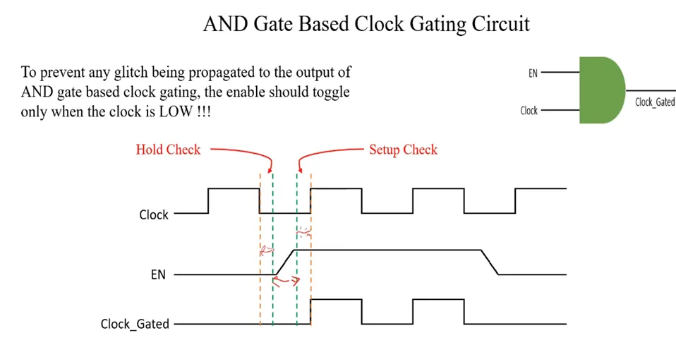 Prevent Glitches: The primary reason is to ensure the output of the ICG cell (the gated clock) is clean and free from glitches or runt pulses. Glitches can cause flip-flops downstream to capture incorrect data or enter metastable states.